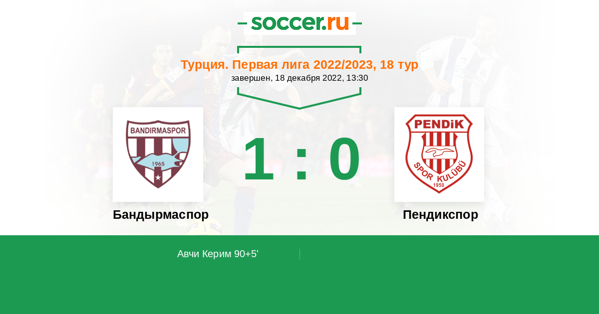 Протокол матча Бандырмаспор против Пендикспор