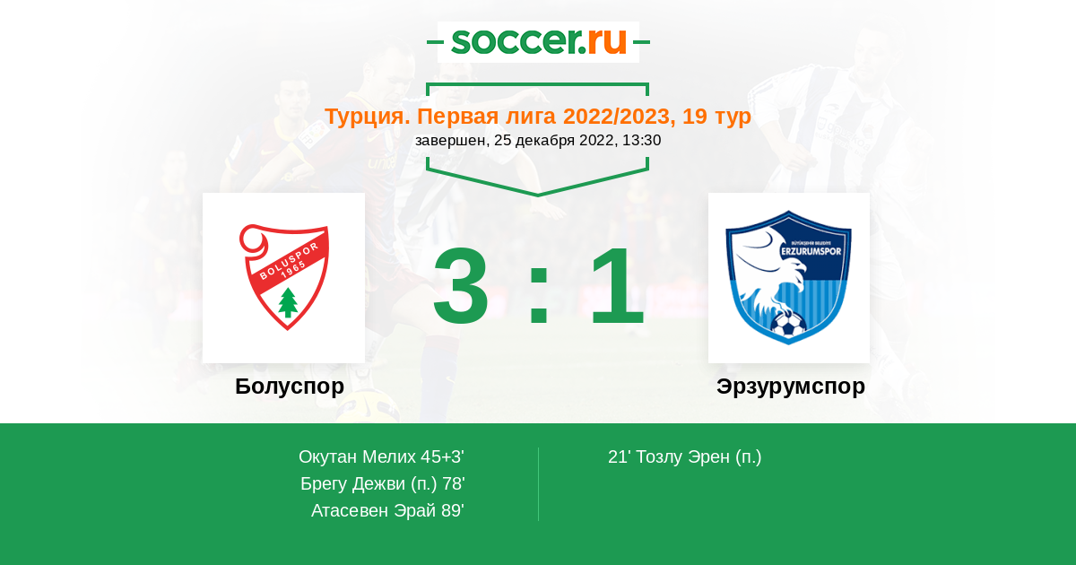 Протокол матча Болуспор против Эрзурумспор