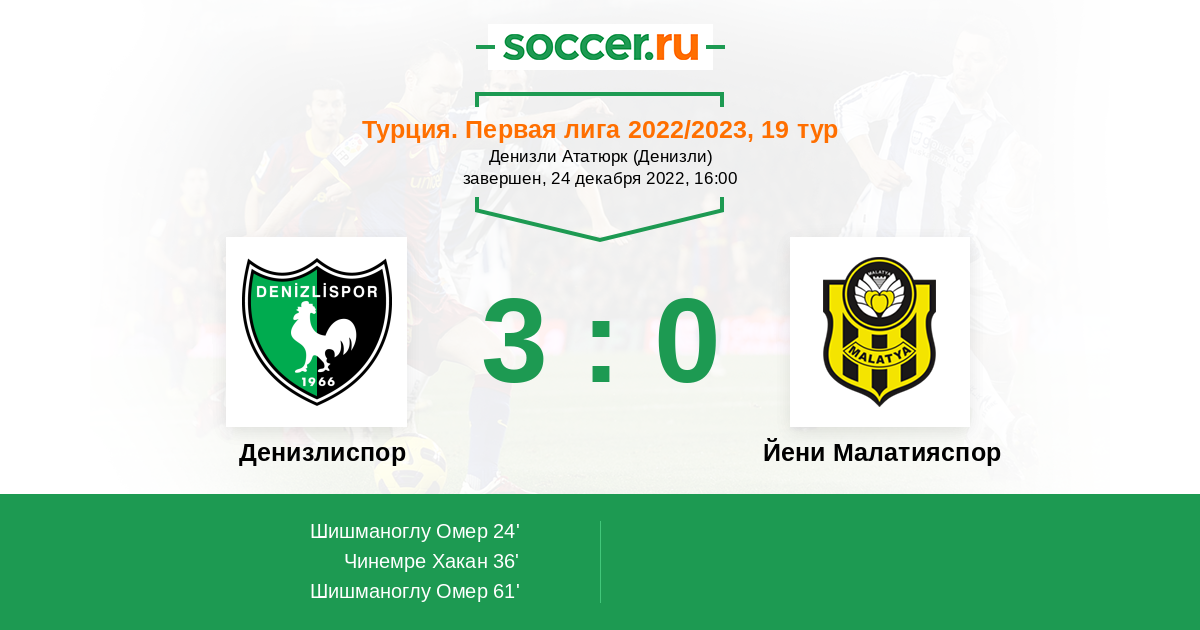 Протокол матча Денизлиспор против Йени Малатияспор