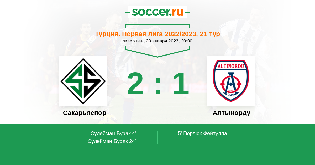 24' (2:1) Сулейман Бурак (10) (Роши Одисе (21))