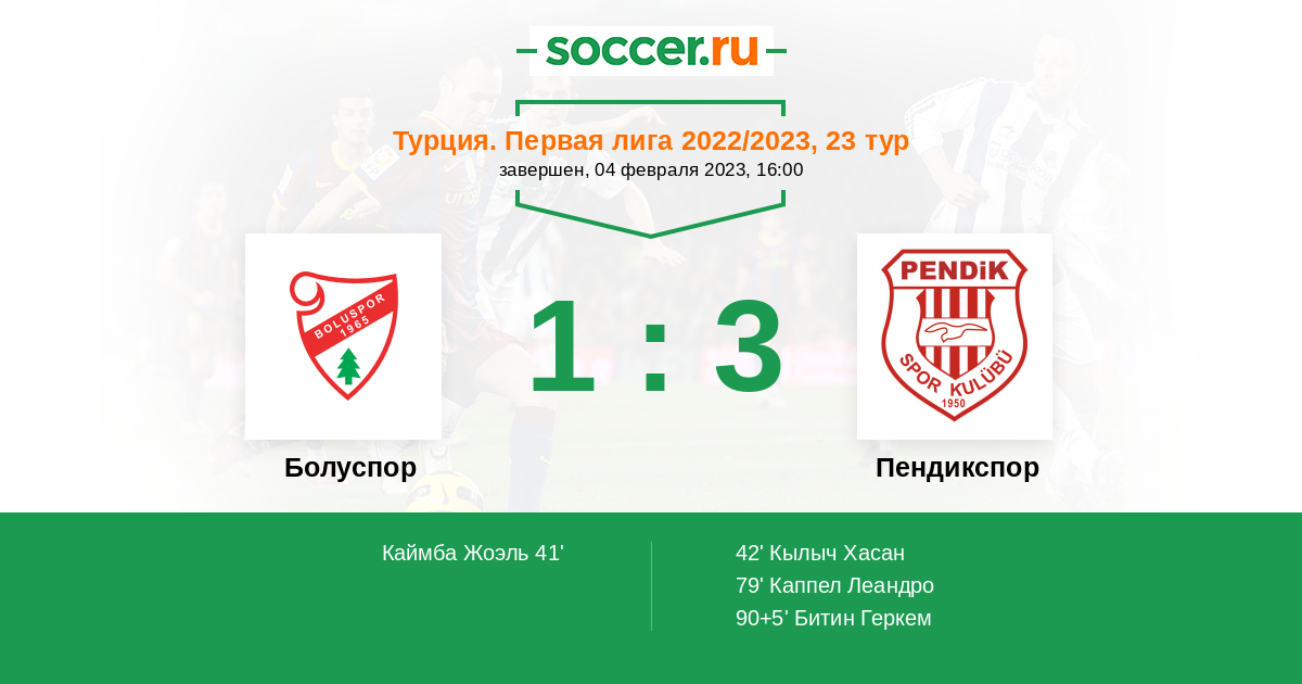 Протокол матча Болуспор против Пендикспор
