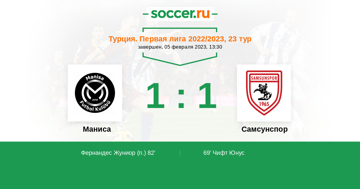 Протокол матча Маниса против Самсунспор