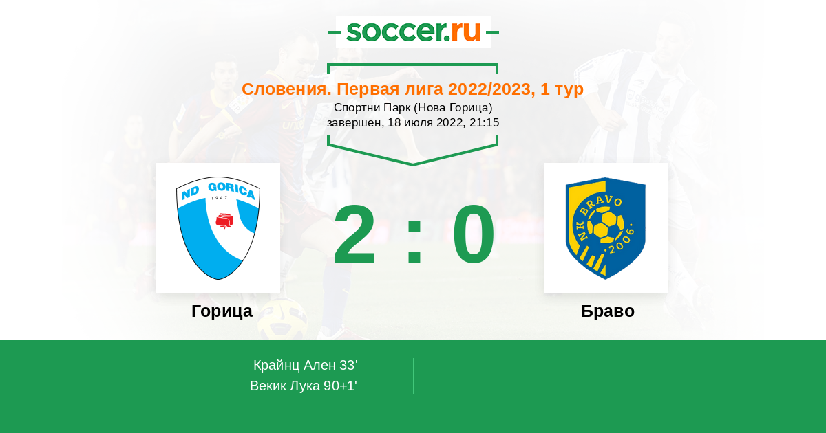 Протокол матча Горица против Браво