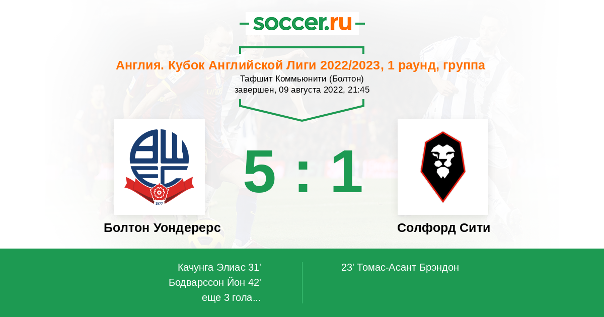 Протокол матча Болтон Уондерерс против Солфорд Сити