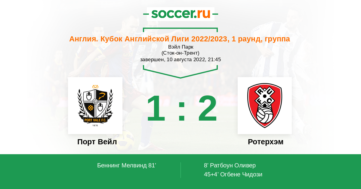 45+4' (0:2) Огбене Чидози (11) (Ратбоун Оливер (18))