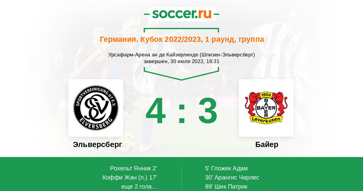 В сегодняшнем матче первого раунда Кубка Германии между Эльферсбергом и Байером поставлю на победу гостей потому, как уровень мастерства даже второго состава гораздо выше хозяев, которым не помогут даже фанаты.