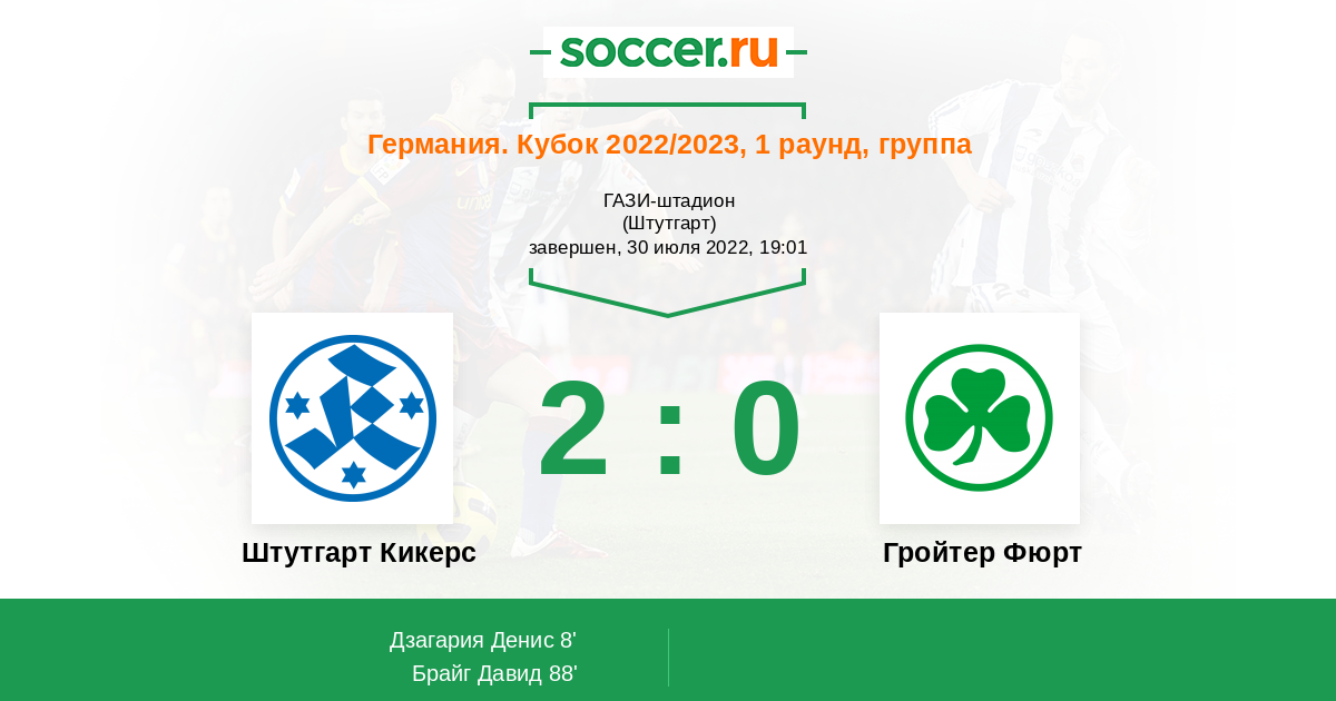 Протокол матча Штутгарт Кикерс против Гройтер Фюрт