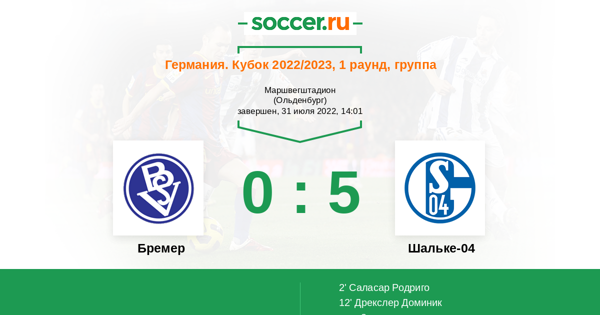Протокол матча Бремер против Шальке-04