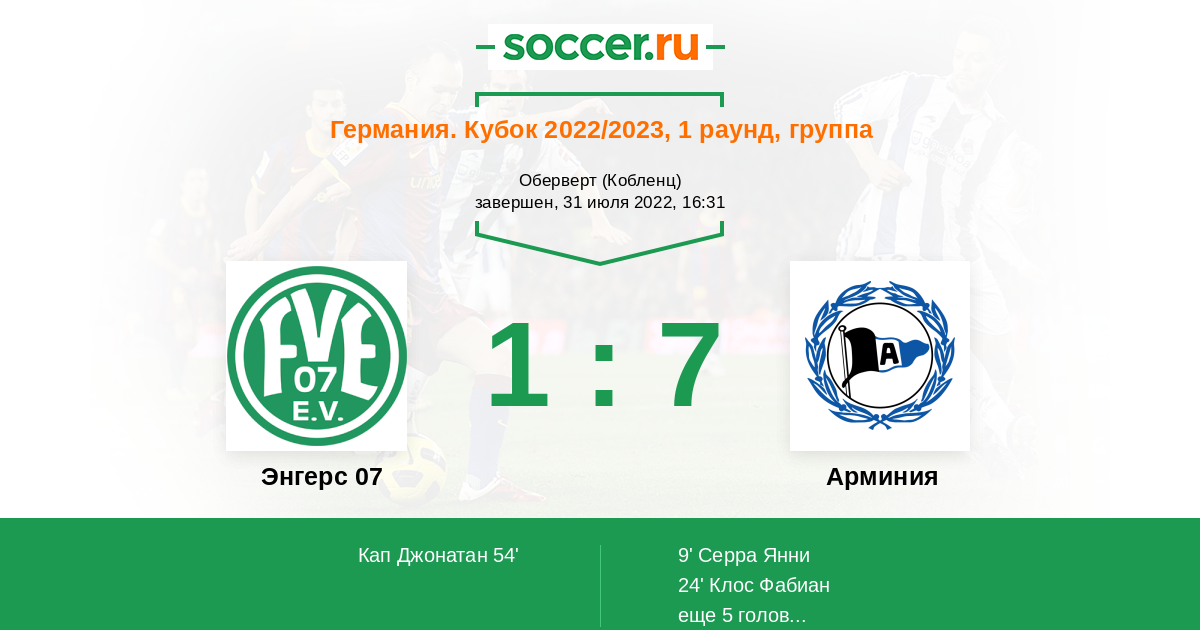 Протокол матча Энгерс 07 против Арминия