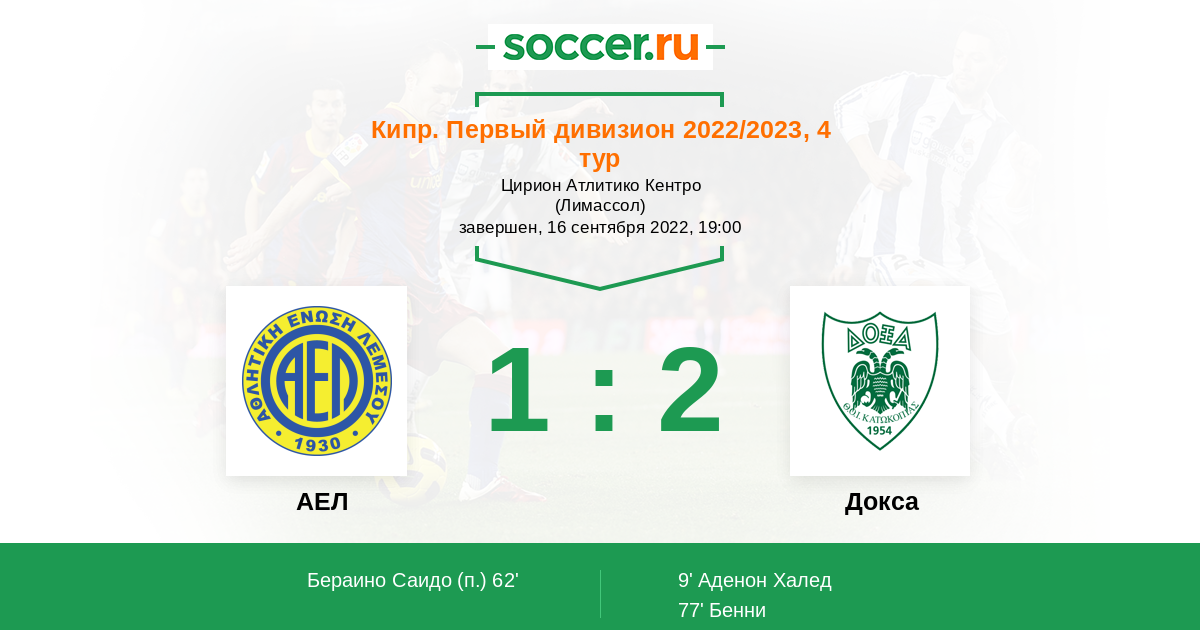 Протокол матча АЕЛ против Докса