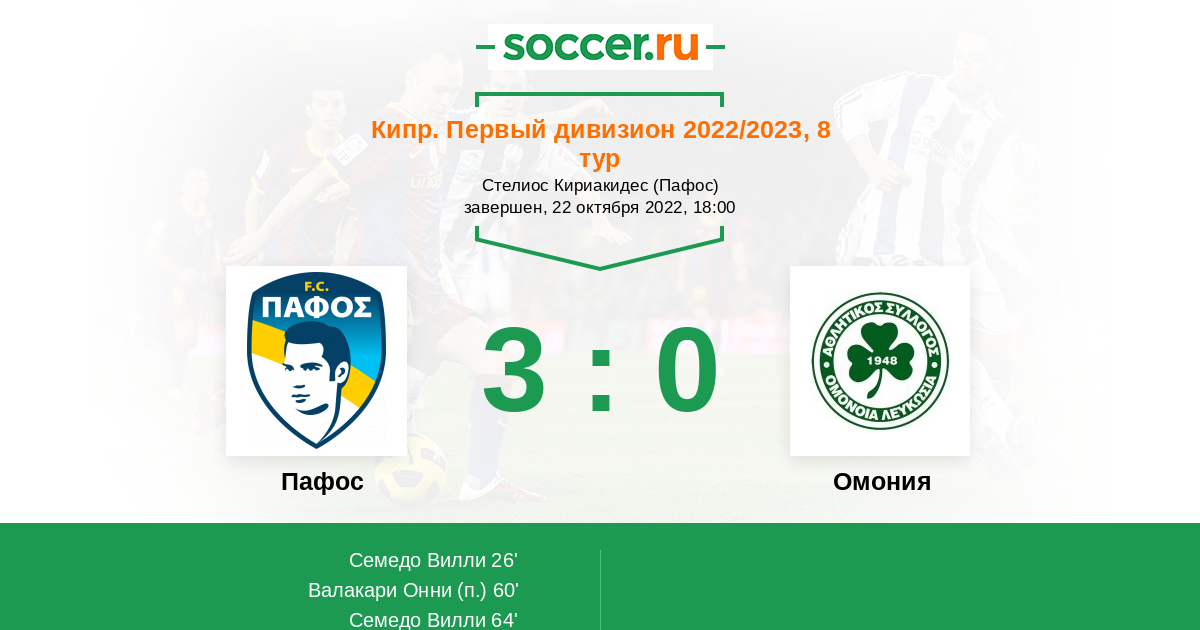 Протокол матча Пафос против Омония