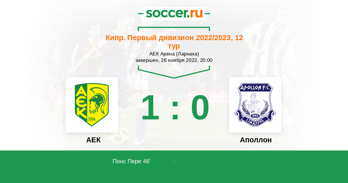 Протокол матча АЕК против Аполлон