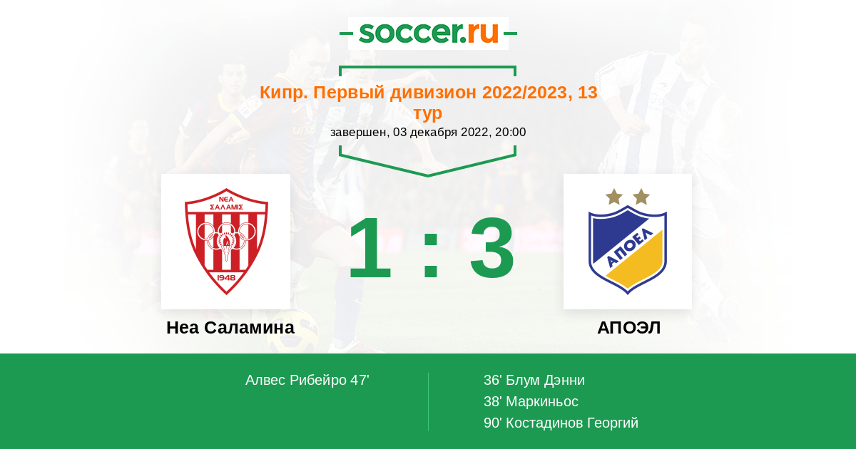 Протокол матча Неа Саламина против АПОЭЛ