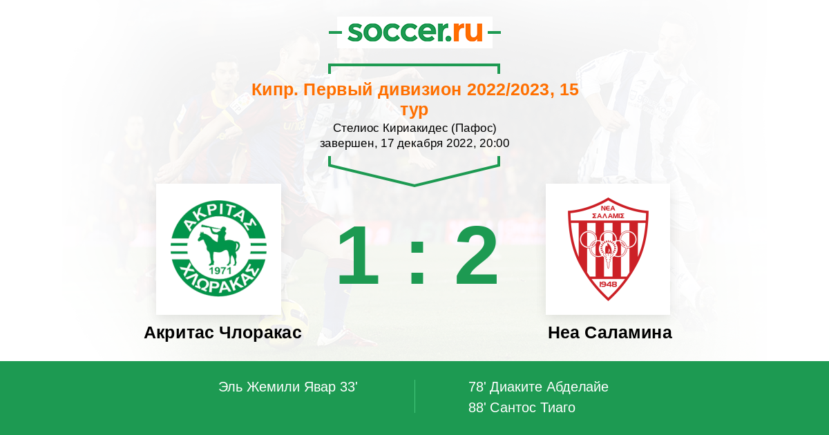 Протокол матча Акритас Члоракас против Неа Саламина