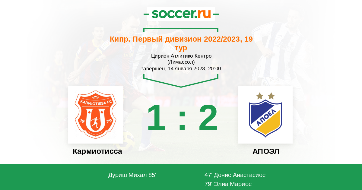 Протокол матча Кармиотисса против АПОЭЛ