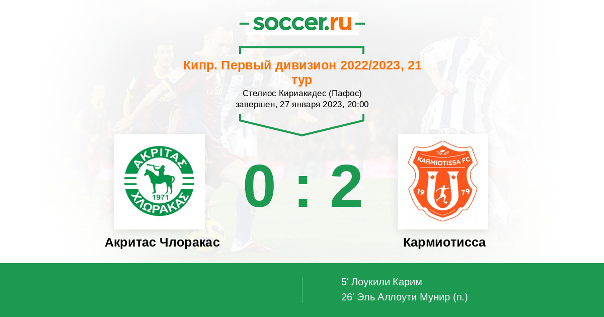 Протокол матча Акритас Члоракас против Кармиотисса