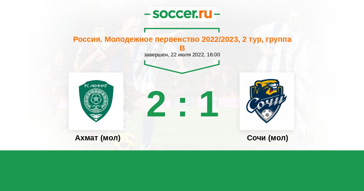 История матча Ахмат (мол) против Сочи (мол)