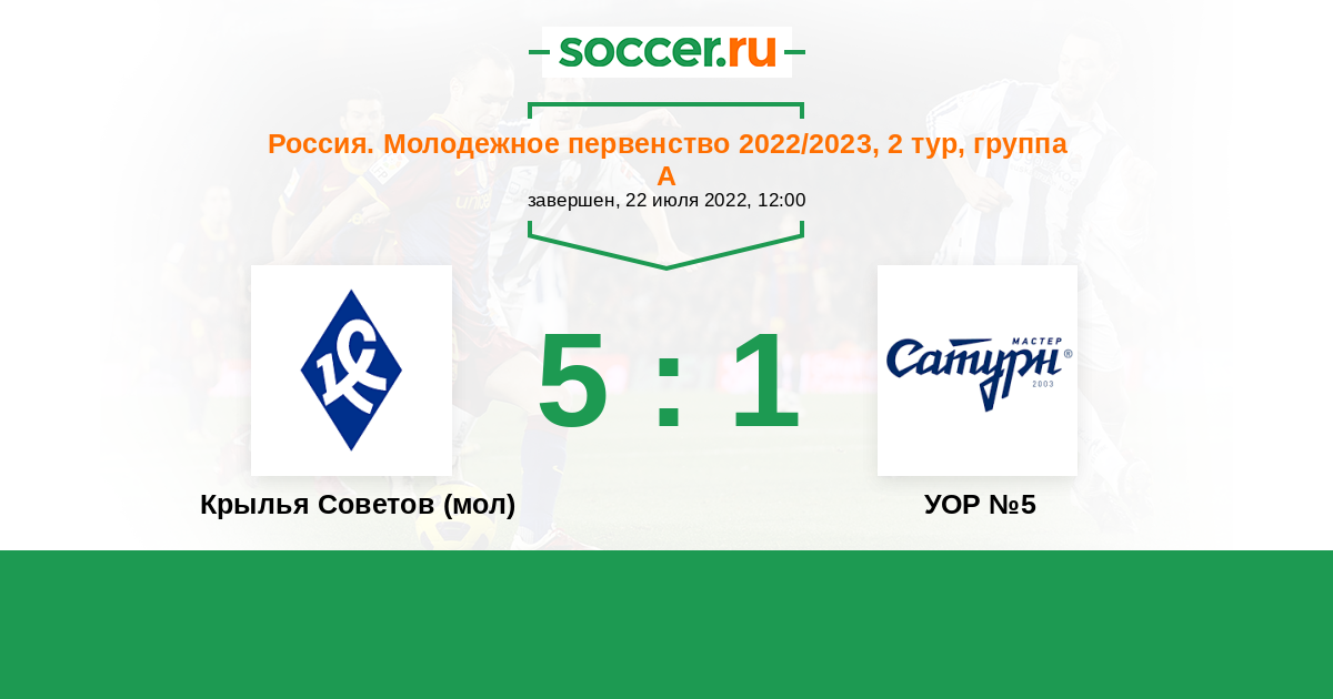 История матча Крылья Советов (мол) против УОР №5