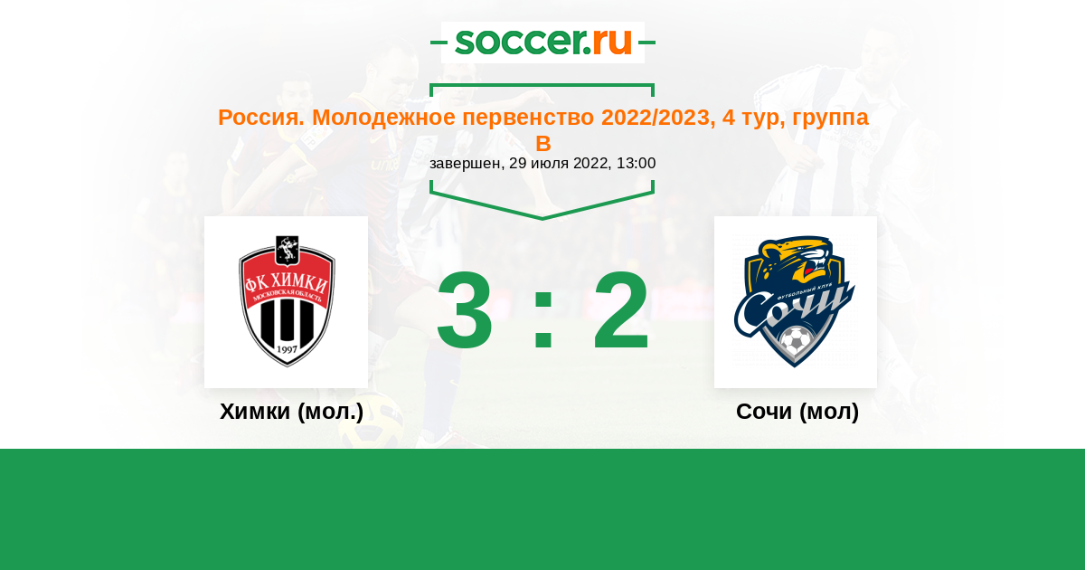История матча Химки (мол.) против Сочи (мол)