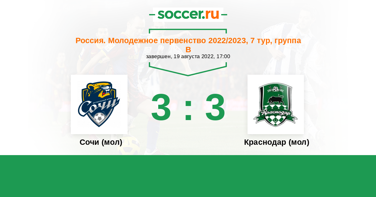 История матча Сочи (мол) против Краснодар (мол)