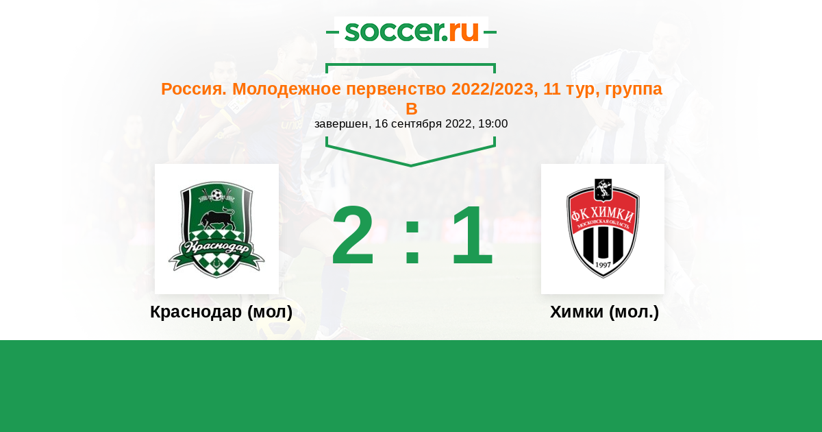 История матча Краснодар (мол) против Химки (мол.)
