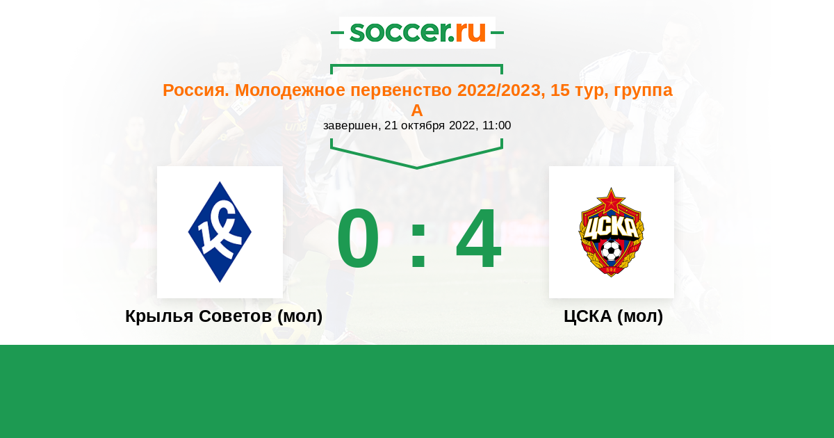 История матча Крылья Советов (мол) против ЦСКА (мол)