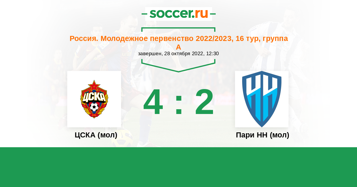 История матча ЦСКА (мол) против Пари НН (мол)