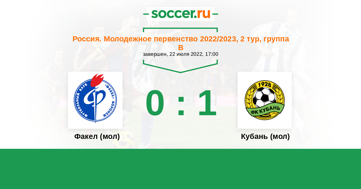 Кубань (мол) 0:1 0:1 0:0