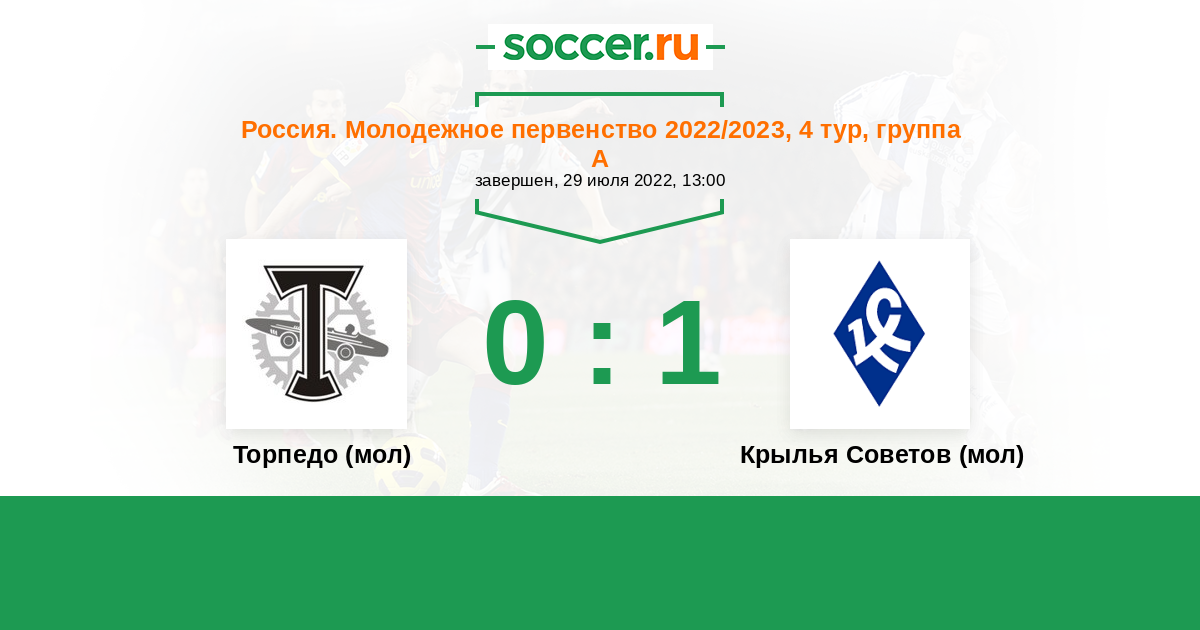 История матча Торпедо (мол) против Крылья Советов (мол)
