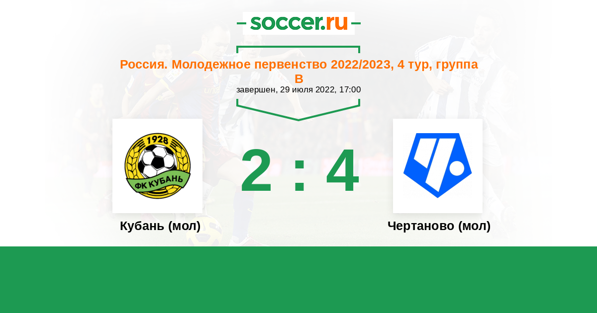 История матча Кубань (мол) против Чертаново (мол)