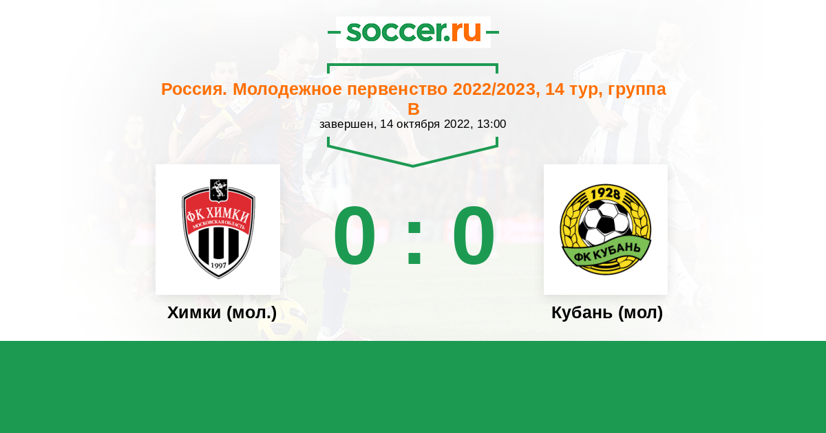 История матча Химки (мол.) против Кубань (мол)