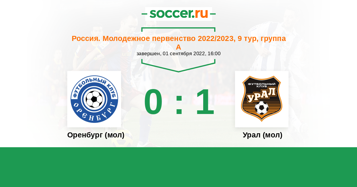 История матча Оренбург (мол) против Урал (мол)