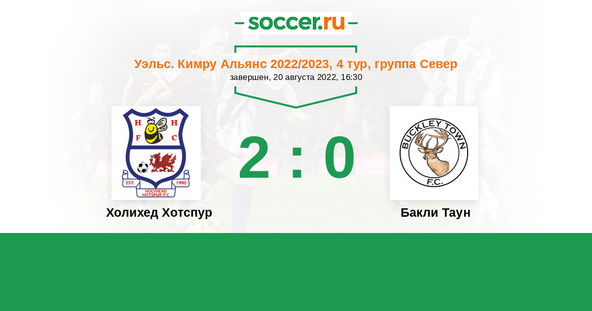 Уэльс. Кимру Альянс 13.08.2016 Бакли Таун Логотип футбольный клуб Бакли Таун 1:1 Логотип футбольный клуб Холихед Хотспур Холихед Хотспур