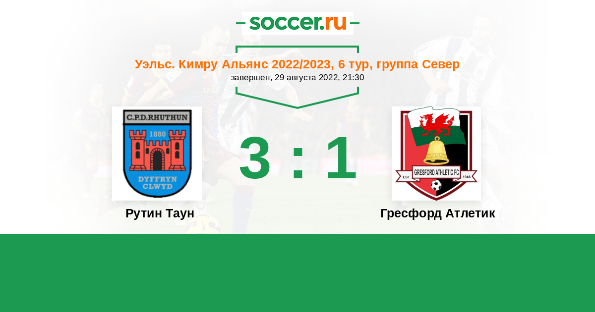 Уэльс. Кимру Альянс 22.10.2021 Рутин Таун Логотип футбольный клуб Рутин Таун 1:0 Логотип футбольный клуб Гресфорд Атлетик Гресфорд Атлетик