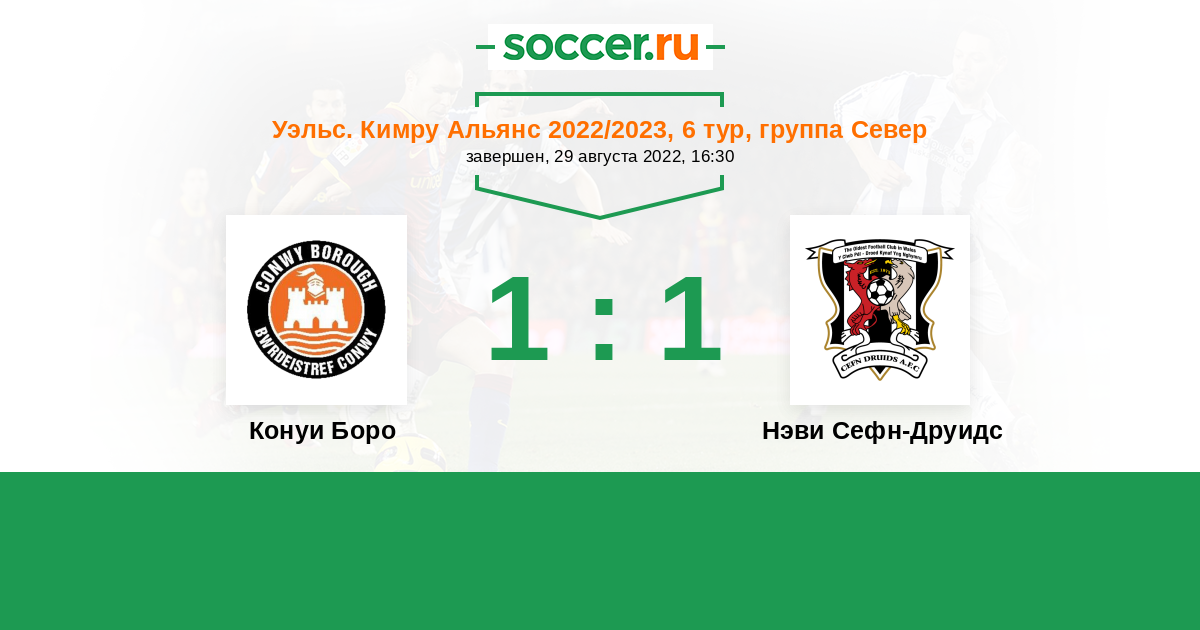 История матча Конуи Боро против Нэви Сефн-Друидс