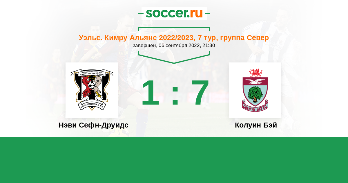 История матча Нэви Сефн-Друидс против Колуин Бэй