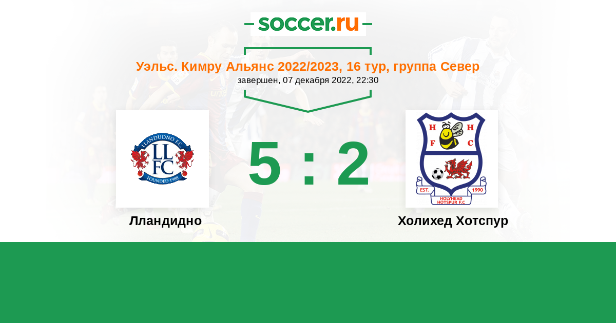 История матча Лландудно против Холихед Хотспур