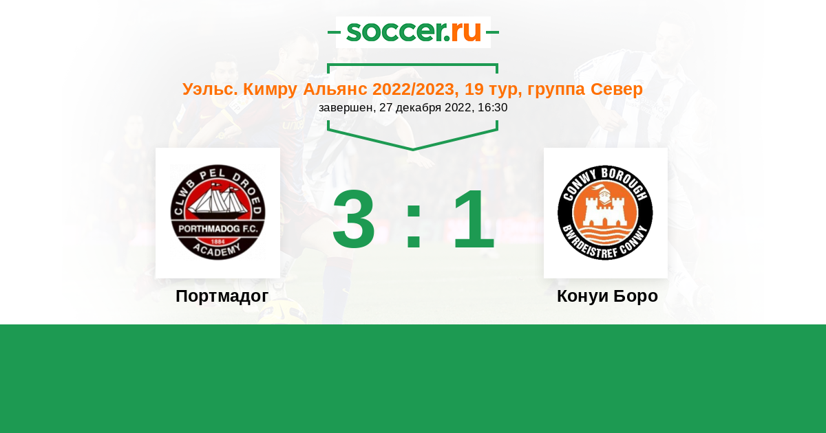Уэльс. Кимру Альянс 29.10.2022 Конуи Боро Логотип футбольный клуб Конуи Боро 0:2 Логотип футбольный клуб Портмадог Портмадог