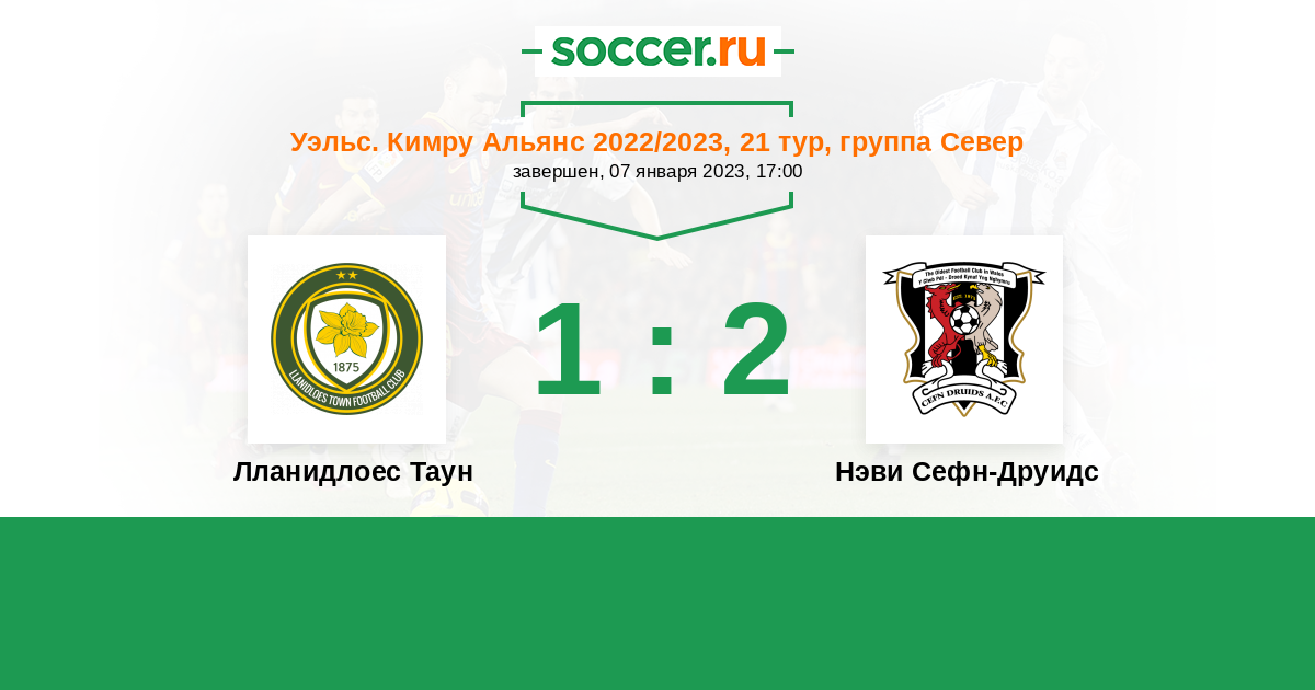 История матча Лланидлоес Таун против Нэви Сефн-Друидс