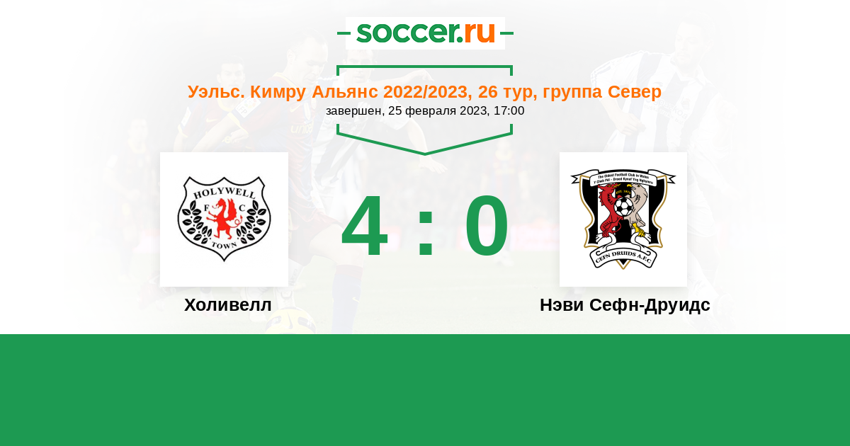 История матча Холивелл против Нэви Сефн-Друидс