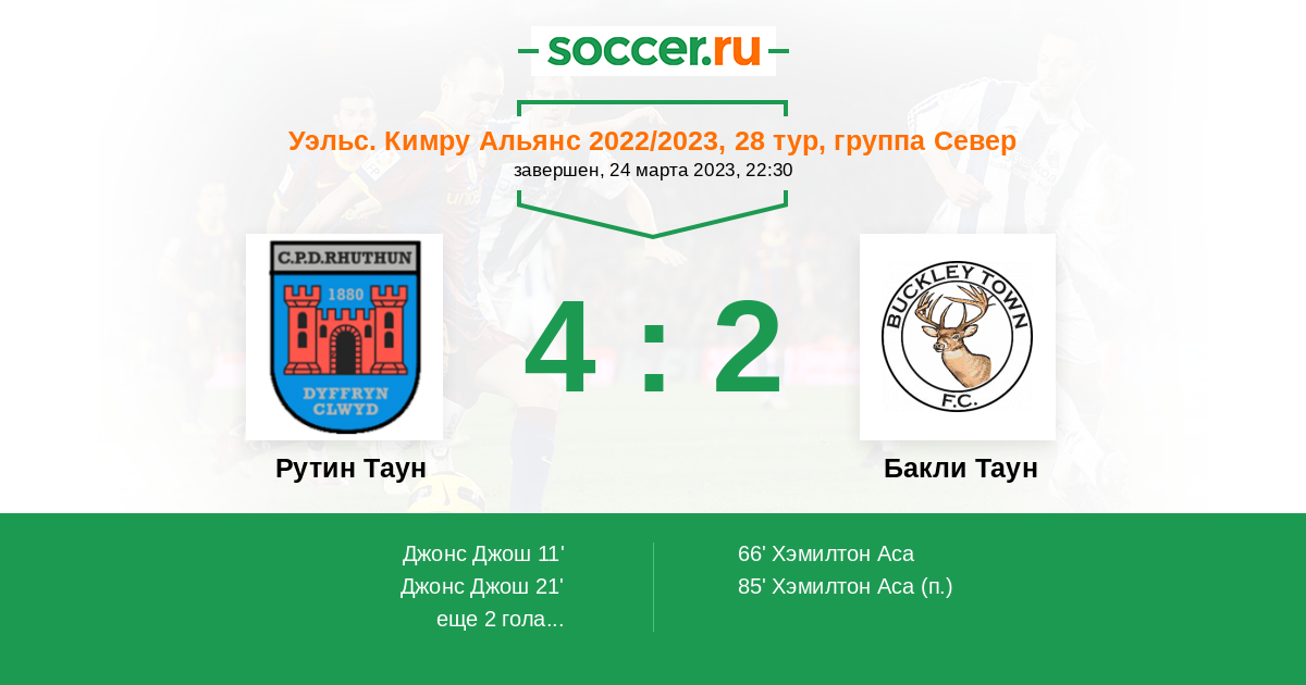 Протокол матча Рутин Таун против Бакли Таун