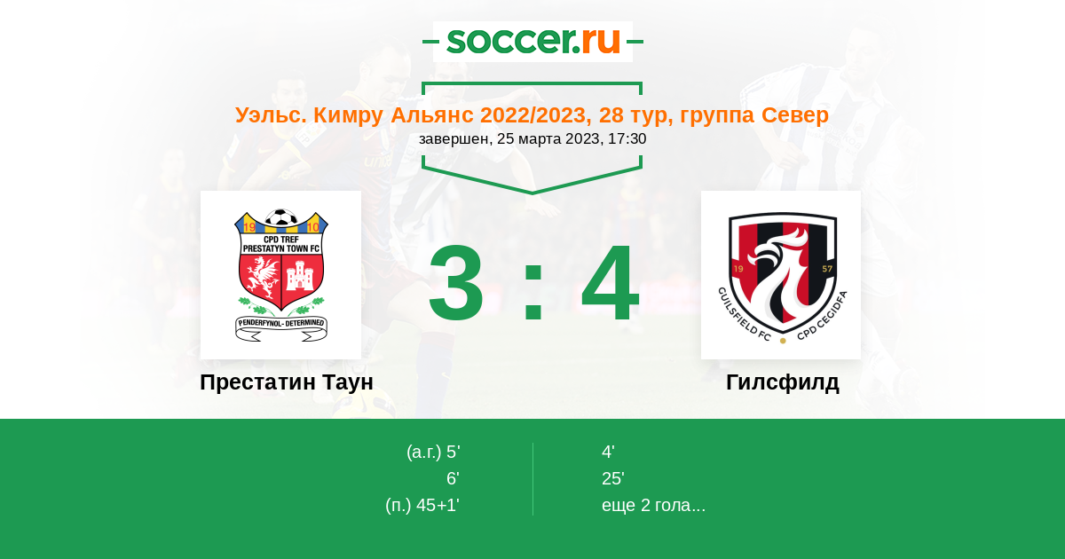 Протокол матча Престатин Таун против Гилсфилд