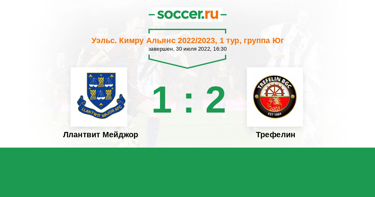 История матча Ллантвит Мейджор против Трефелин