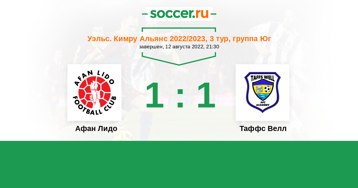 История матча Афан Лидо против Таффс Велл