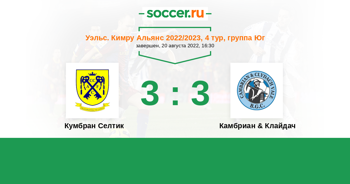 История матча Кумбран Селтик против Камбриан & Клайдач