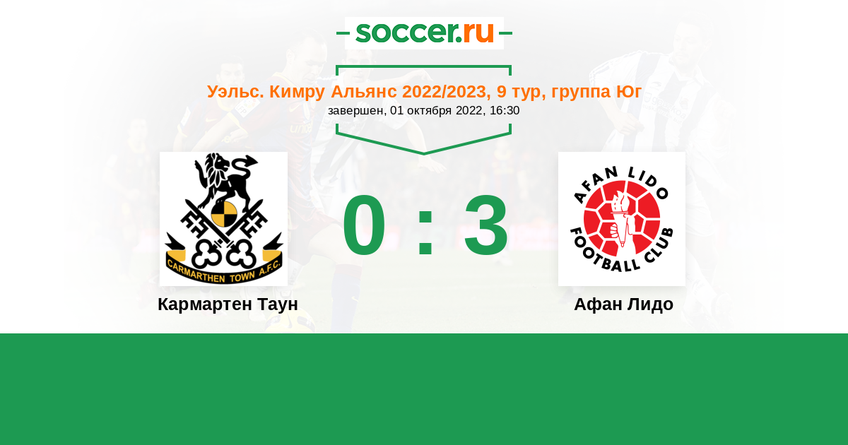 Уэльс. Кимру Альянс 30.10.2021 Афан Лидо Логотип футбольный клуб Афан Лидо (Порт-Толбот) 0:4 Логотип футбольный клуб Кармартен Таун Кармартен Таун