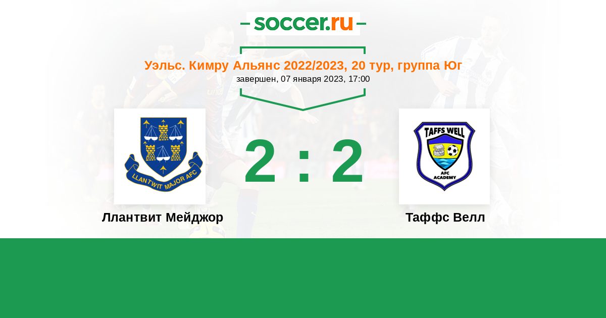 История матча Ллантвит Мейджор против Таффс Велл