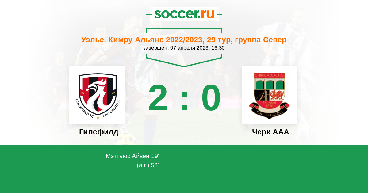 Протокол матча Гилсфилд против Черк ААА