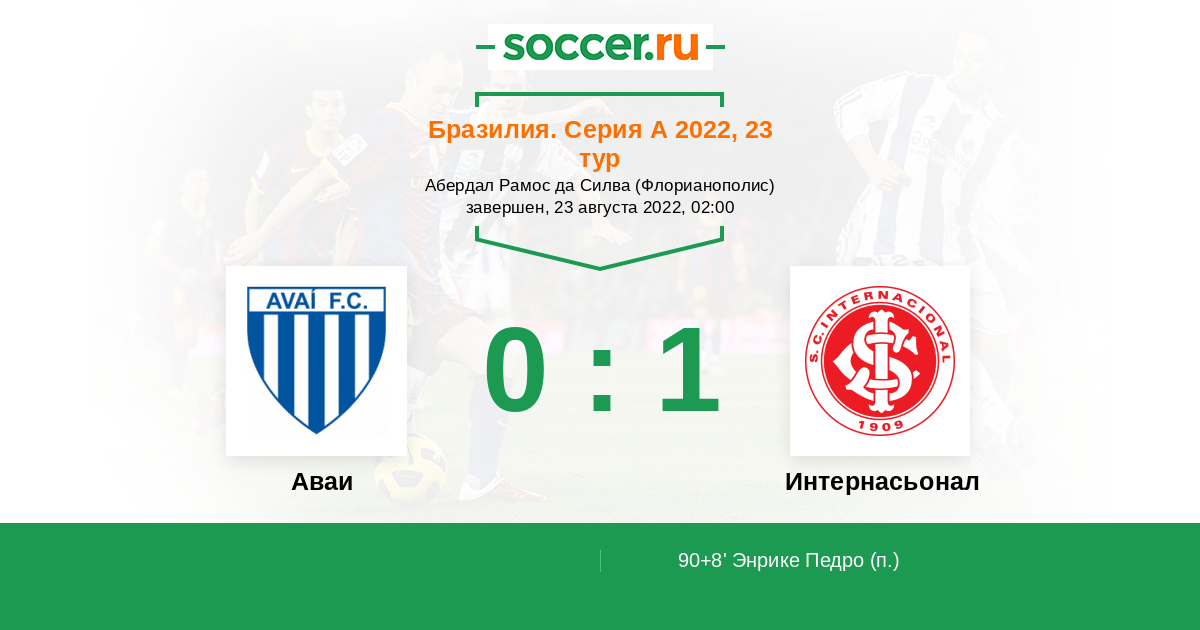 Протокол матча Аваи против Интернасьонал