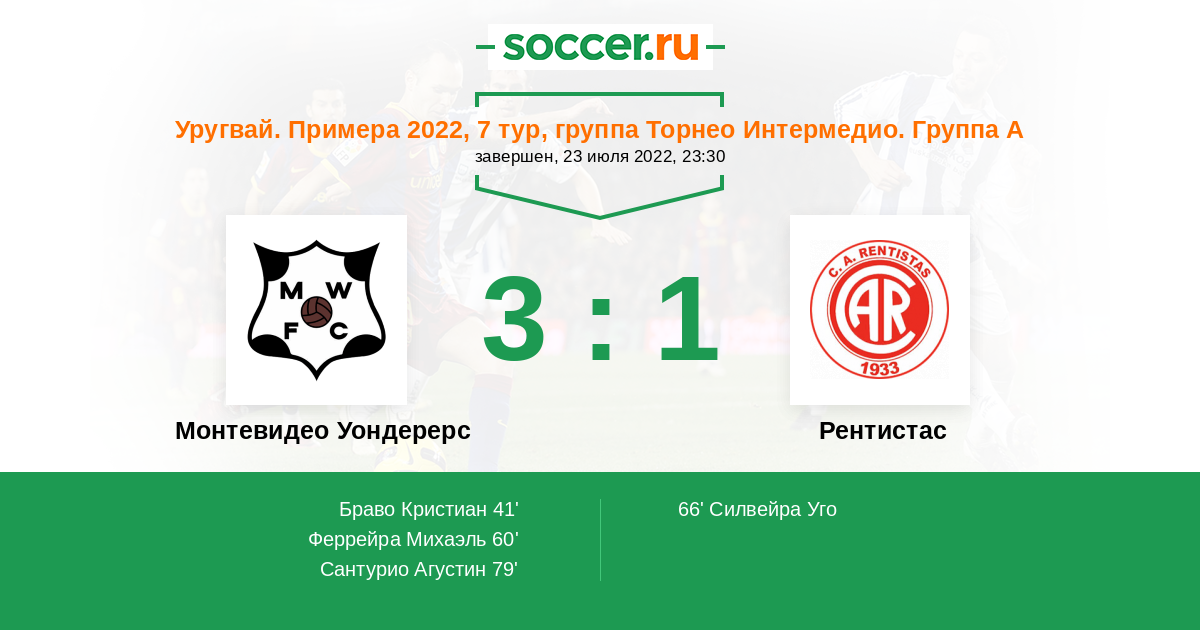 Протокол матча Монтевидео Уондерерс против Рентистас